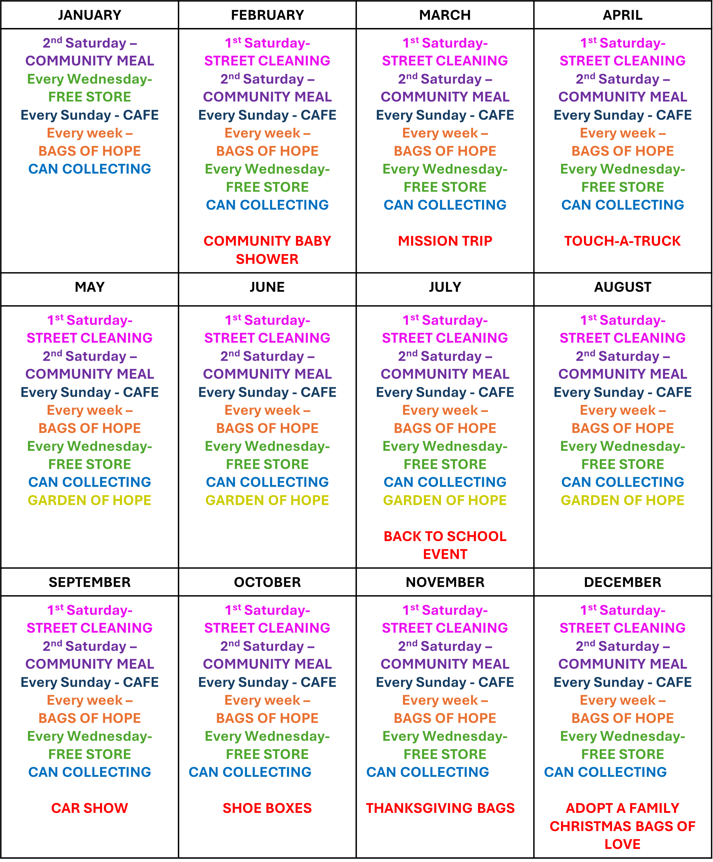 The mission statement of our church is Connect, Transform and Serve. Our Missions Team is very active inside our community as well as outside our community. We are proud of our missions work - both locally and globally - as we continue to be the hands and feet of Jesus. To get involved, contact Pastor Lizzy at the above address.